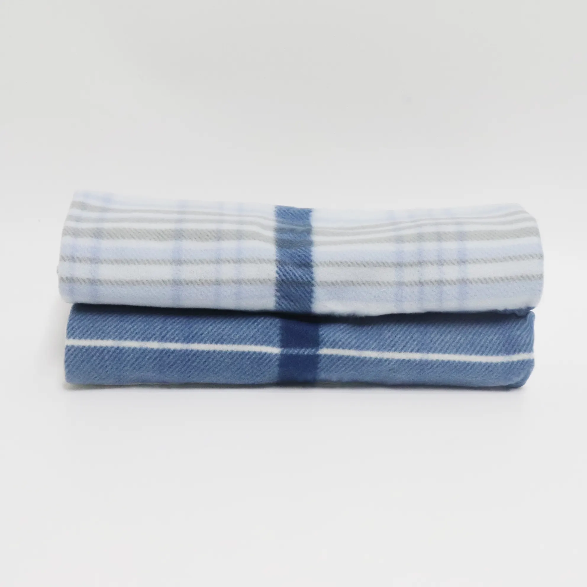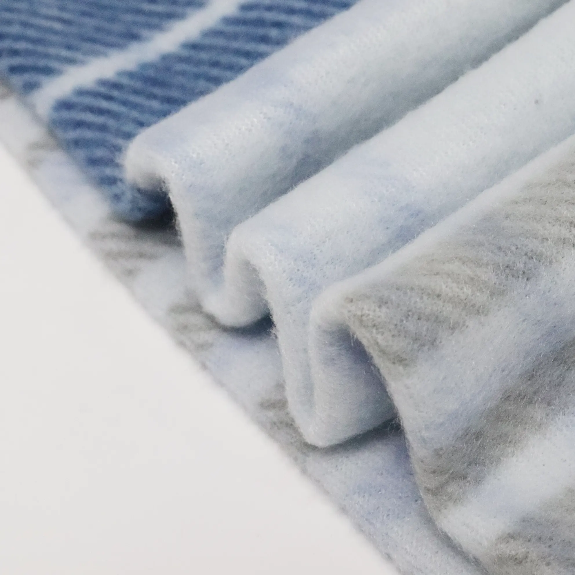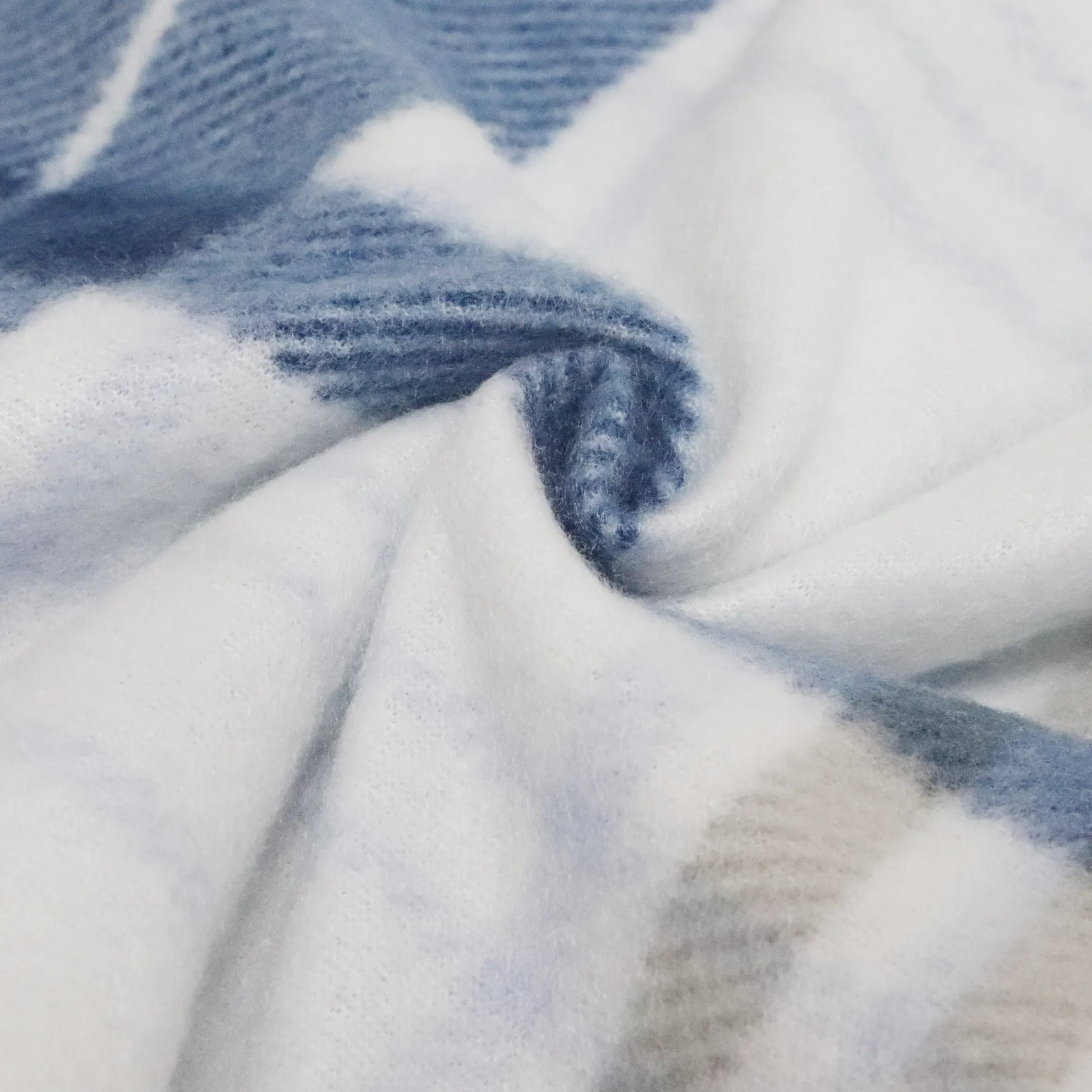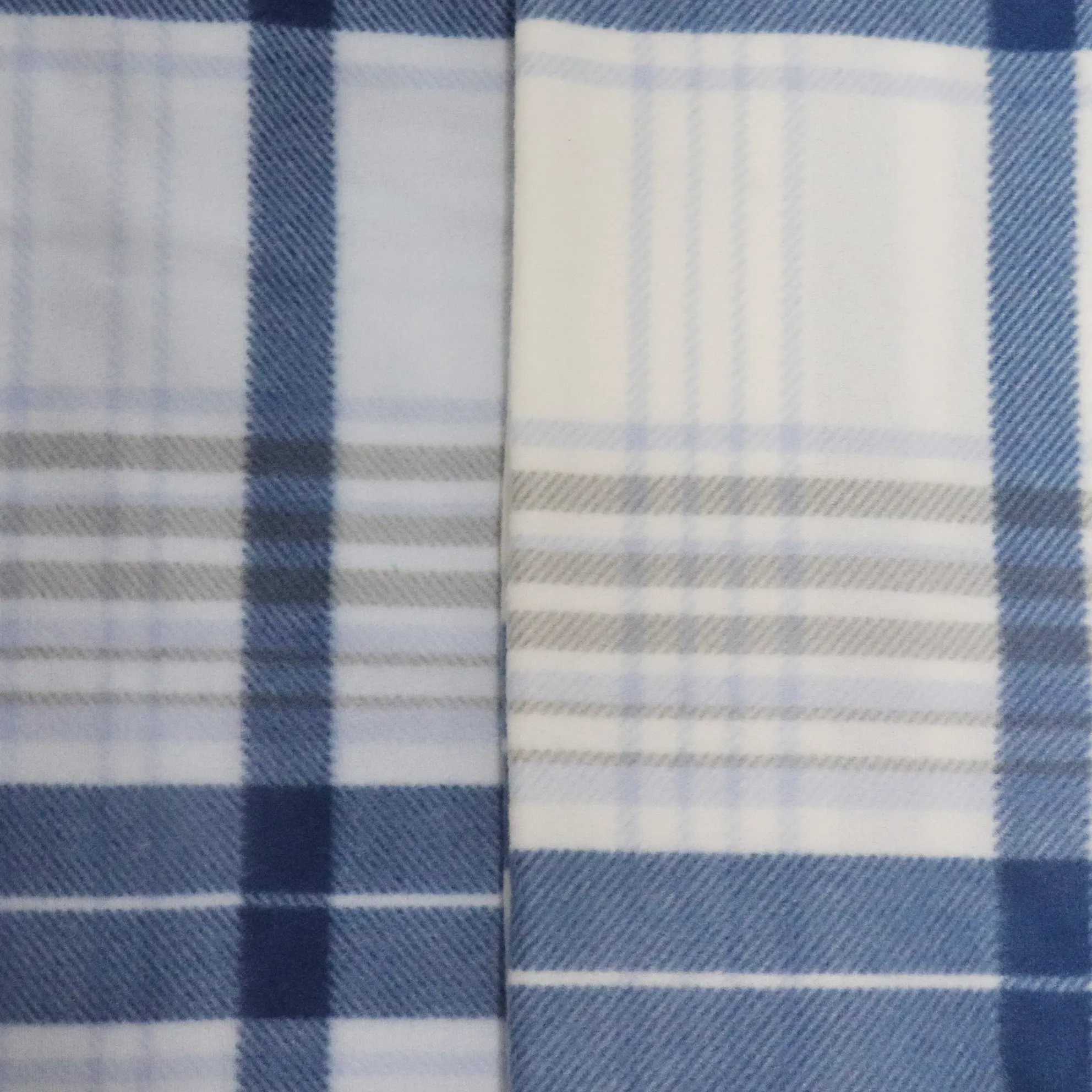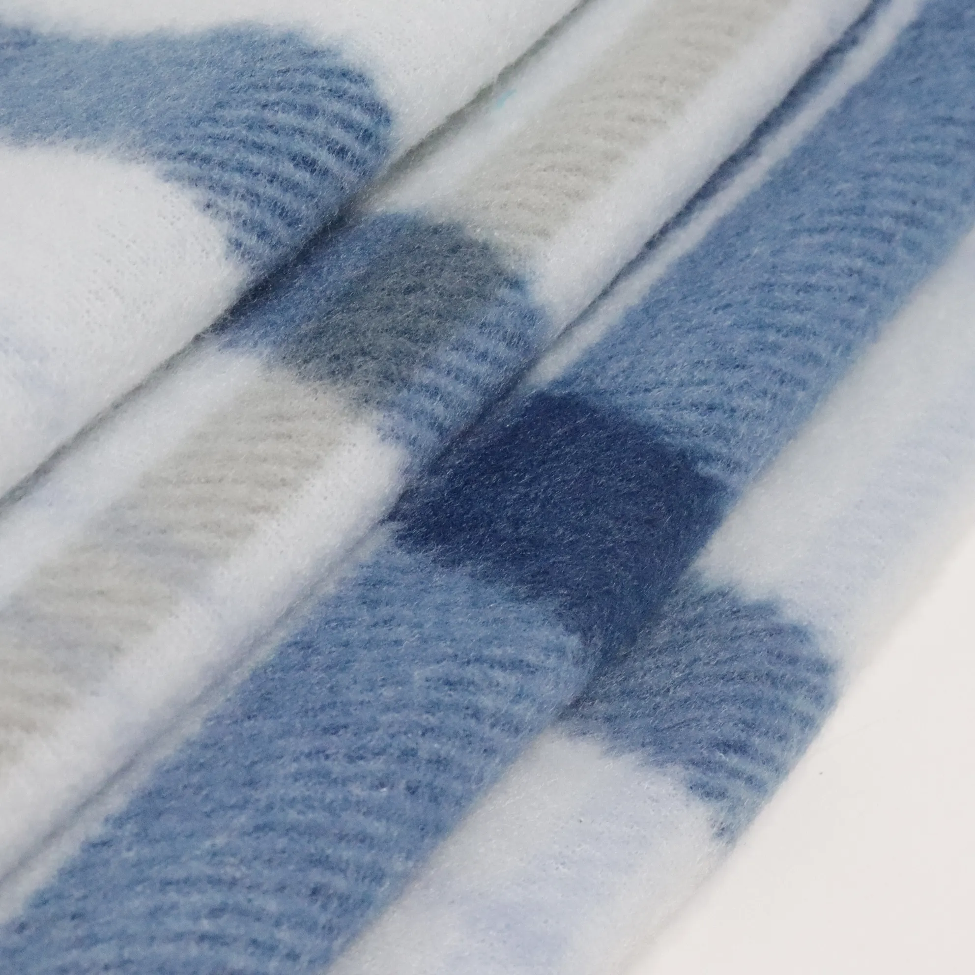 Blue Brown Striped Checkered Printed Polar Fleece Fabric