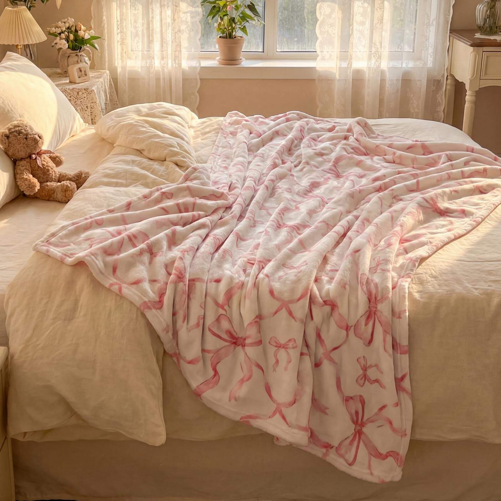 Flanelová deka s potiskem růžových mašliček: Kde se setkává pohodlí s kouzelným šarmem