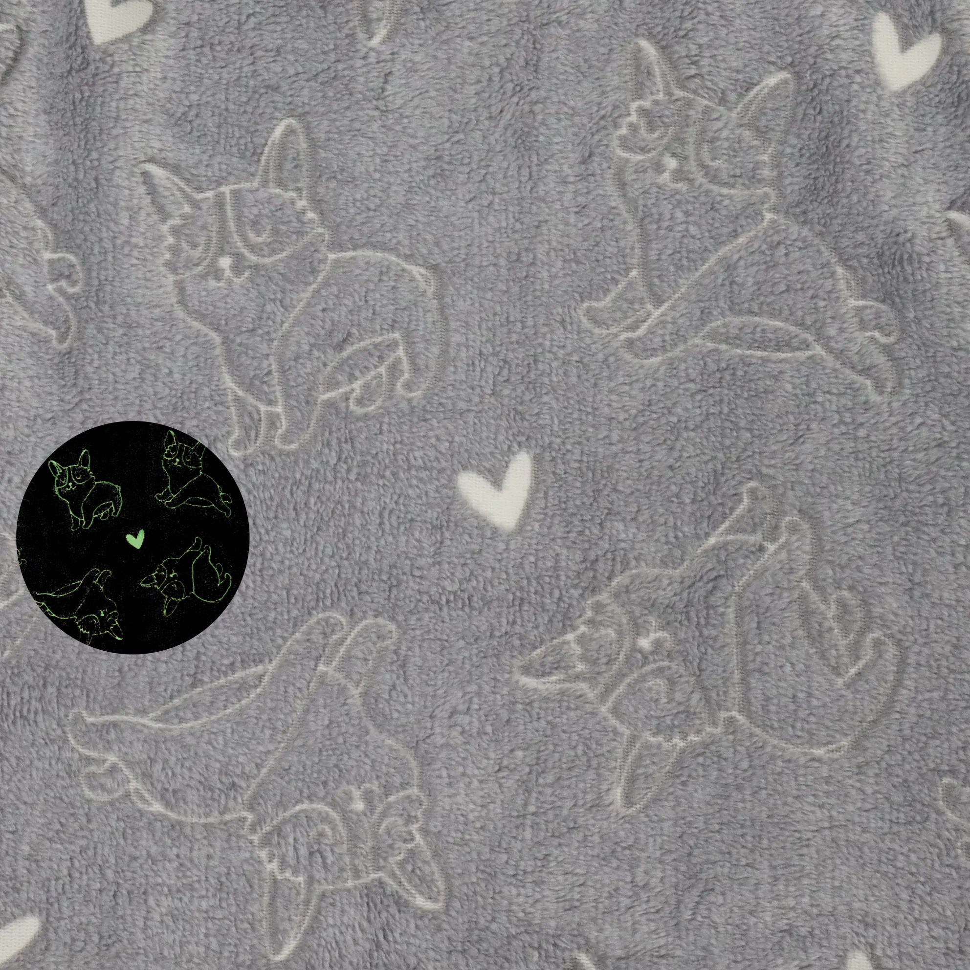 3.Application Scenarios:This flannel fabric with a corgi printing. And it can glow at night. It is a super great gift for kids for their bedding blanket.