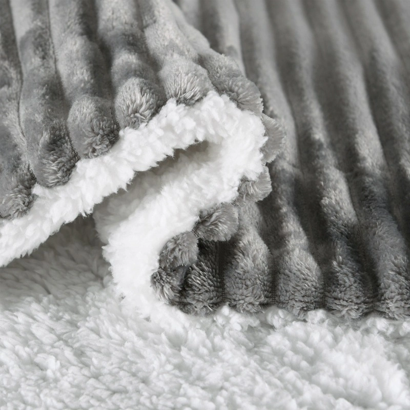 Cuvertură cu ambele fețe extrem de moale, cu fața din fleece și spatele din pluș sherpa, care vă oferă senzații diferite de moliciune pentru a vă îmbunătăți somnul, de la o parte netedă și pufoasă la cealaltă - vă aduce confort și căldură supreme cu partea superioară din fleece și spatele din sherpa - unite cu margini decorative tricotate pentru un aspect superior.