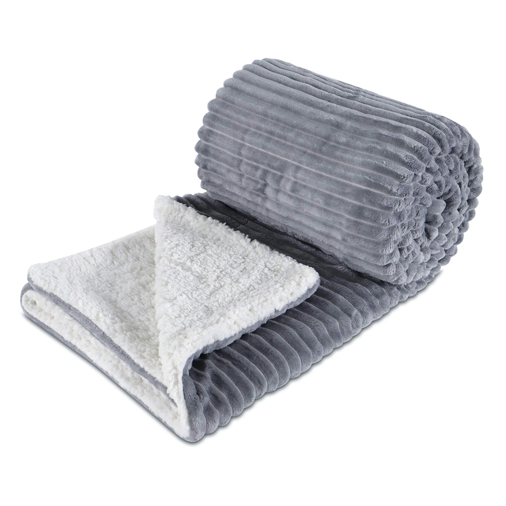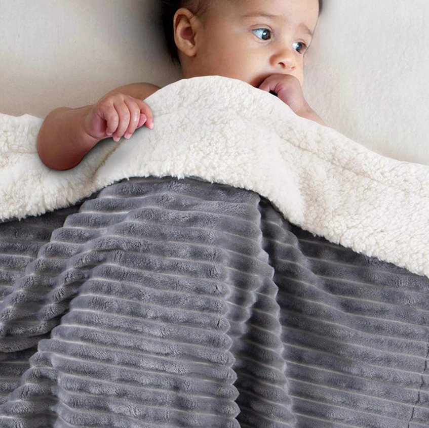 ผ้าห่มเด็กทารกขนฟลีซลายทางผ้าฝ้ายนุ่มอุ่นสองชั้นแบบเวลเวต